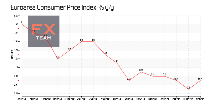 Инфляция выросла на 0.7% в апреле с 52 – месячного минимума в 0.5%месяцем ранее, по предварительной оценке Eurostat. В то же время, показатель оказался ниже уровня в 0.8%, который ожидали экономисты. Окончательные данные станут известны 15 мая.