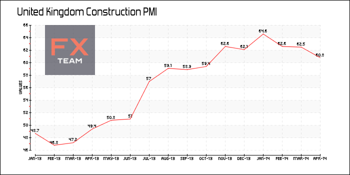 - Индекс PMI для строительного сектора в Великобритании упал до 60,8 в апреле