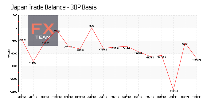 Торговый баланс оказался в дефиците на отметке 1,333.6 млрд. иен. Аналитики прогнозировали, что показатель составит 1,125.4 млрд. иен, в предыдущем месяце дефицит показателя составлял 533.4 млрд. иен.