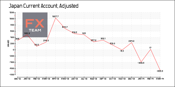 Платежный баланс с учетом коррекции составил 782.9 млрд. иен. Прогноз аналитиков находился на уровне 545.8 млрд. после пересмотренного в сторону снижения показателя февраля -36.1 млрд. (первоначально -41.7млрд.).