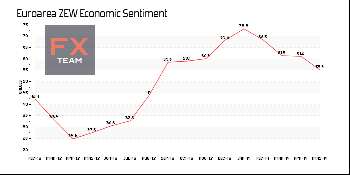 Экономические ожидания для Еврозоны утратили свои позиции в мае, сообщил ZEW. В то же время, индикатор текущей экономической ситуации снизился на 4.9 пункта до -25.6 пункта в мае.