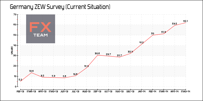 С другой стороны, оценка текущей экономической ситуации находится на максимально высоком уровне с июля 2011 года. Индикатор вырос на 2.6 пункта до отметки 62.1 в мае. Аналитики прогнозировал, что показатель окажется в районе 60.5.