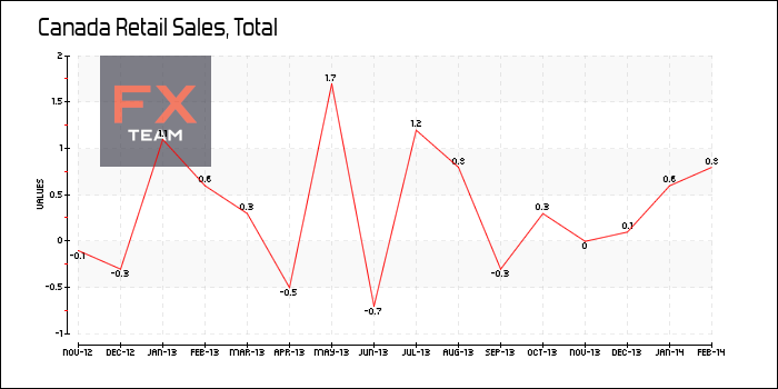 - Розничные продажи в Канаде снизились на 0,1% в марте
