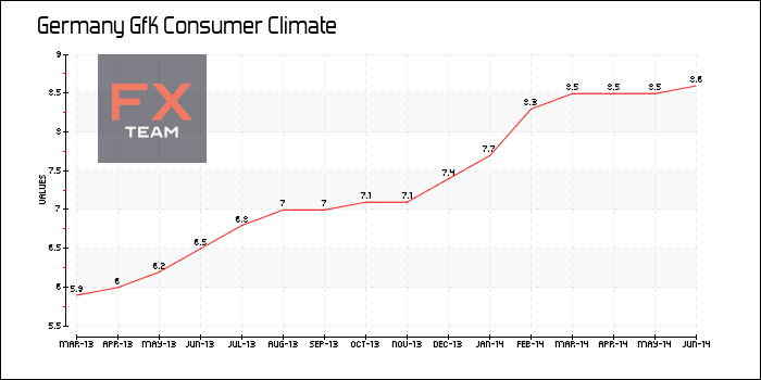Опережающий индекс потребительского климата в Германии остался на отметке 8,5 для июня. Отметим, что данный показатель оставался без изменений на текущем уровне в апреле и в мае.