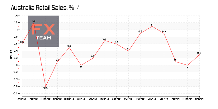 Объем розничной торговли в Австралии с учетом сезонных факторов увеличился на 0,2% за апрель 2014 г. в месячном исчислении, сообщает Управление статистики. Прогнозировался рост показателя на 0,3%. Месяцем ранее продажи выросли на 0,1%.