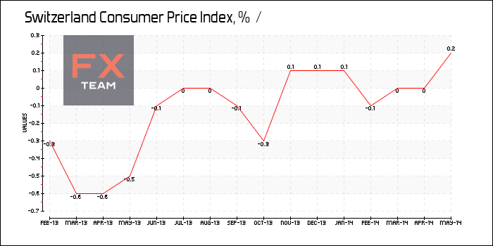 В годовом выражении темпы инфляции в Швейцарии составили 0,2% в мае по сравнению с нулевым значением в апреле.
