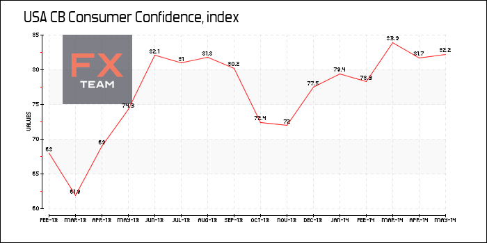 Индикатор потребительской уверенности (CBConsumerConfidence) составил 85,2 пункта за июнь 2014 г. по сравнению с 82,2 пункта в предыдущем месяце. Аналитики прогнозировали повышение показателя до 83,6 пункта.