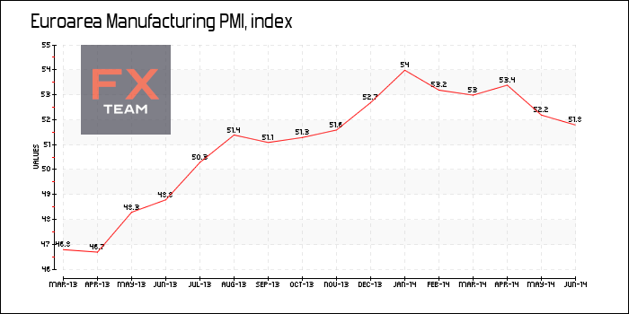 Финальный индекс PMI для обрабатывающей промышленности снизился к семимесячным минимумам, до отметки 51.8 в июне с 52.2 в мае, значение оказалось ниже предварительных значений 51.9, опубликованных ранее.