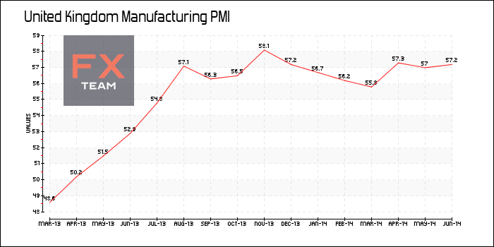 - Индекс PMI для производственного сектора Великобритании повысился до 57,5 в июне