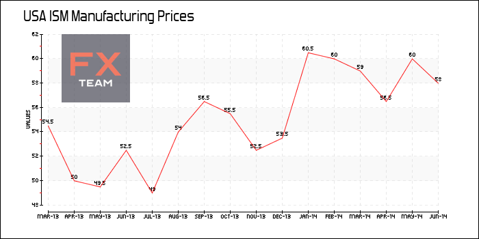 По данным Institute for Supply Management (ISM), темпы роста деловой активности в производственном секторе США оказались ниже прогнозов в июне.
