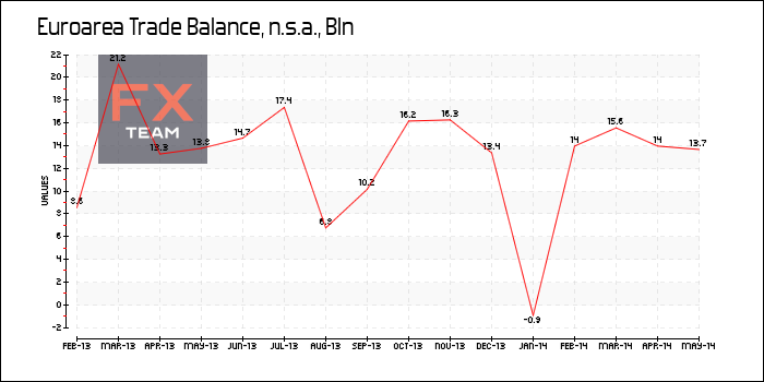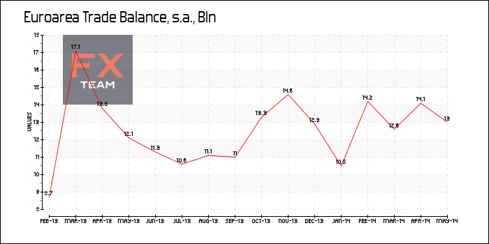 Профицит торгового баланса еврозоны с учетом сезонной поправки составил 15,3 млрд. евро за май 2014 г., сообщает статистическое ведомство Евросоюза Eurostat. Аналитики прогнозировали положительное сальдо на уровне 16,3 млрд. евро. Месяцем ранее был зарегистрирован профицит в размере 15,2 млрд. евро.