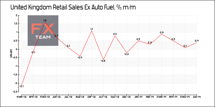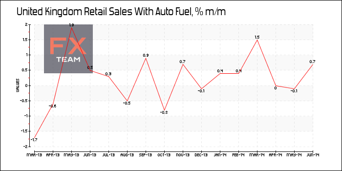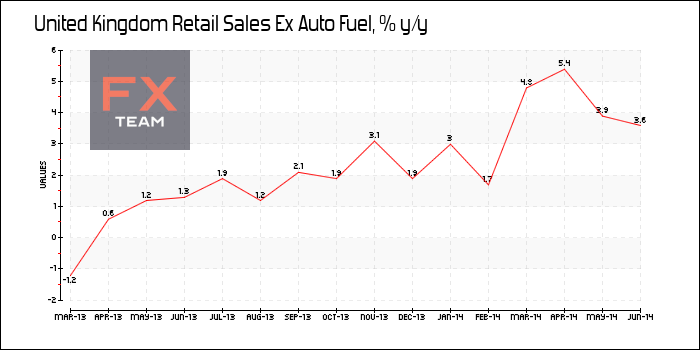 В годовом выражении розничные продажи в Великобритании возросли на 3,6% в июне.
