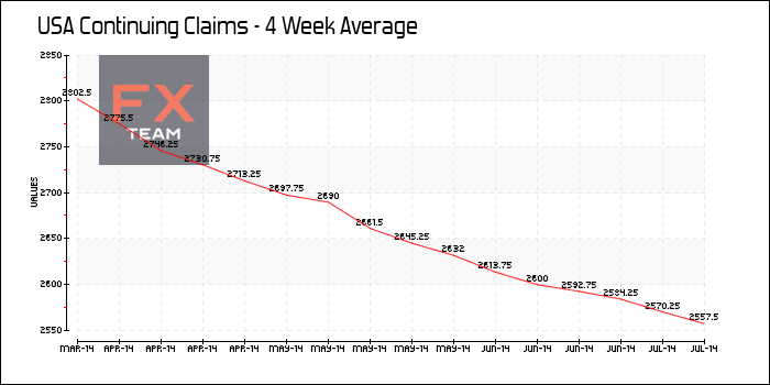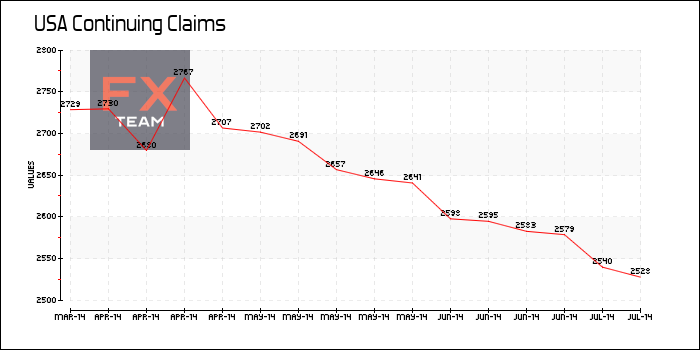 В то же время, число американцев, продолжающих получать пособия по безработице, снизилось за неделю к 12 июля на 8,0 тыс. до 2,5 млн. человек.