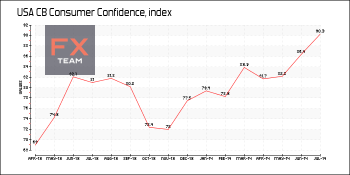 По данным исследовательской группы Conference Board, уверенность среди американских потребителей в июле достигла рекордного уровня за последние семь лет. В частности, отмечается улучшение оценки условий на рынке труда, а также экономической ситуации в США в целом.