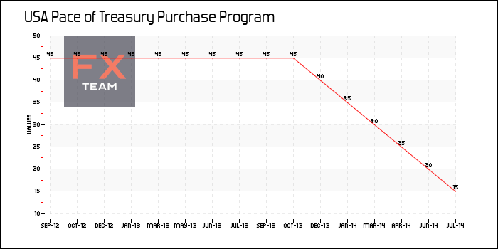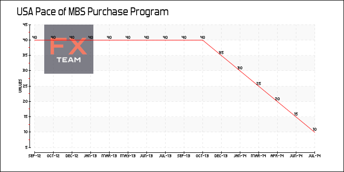 В то же время, было решено сократить программу выкупа бумаг казначейства США и обеспеченных ипотекой ценных бумаг (MBS) c 15 млрд. долларов до 10 млрд. долларов в месяц, а программу выкупа казначейских облигаций - с 20 млрд. долларов до 15 млрд. долларов в месяц. Решение было поддержано девятью членами Комитета из десяти.