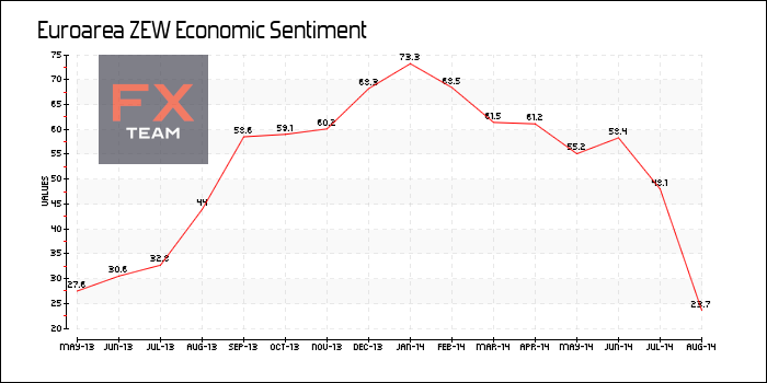 Индикатор экономического доверия ZEW для еврозоны снизился в августе с 24.4 до 23.7. В то же время, индекс текущей экономической ситуации упал на 2.3 пункта до -33.8.