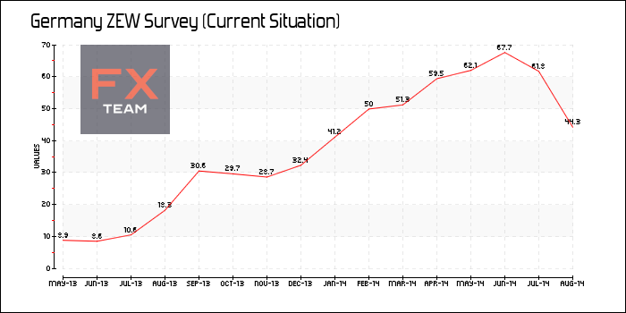 В то же самое время, оценка текущей экономической ситуации снизилась в августе до 44.3 с 61.8 в июле. Ожидаемое значение был на уровне 54.