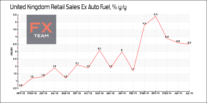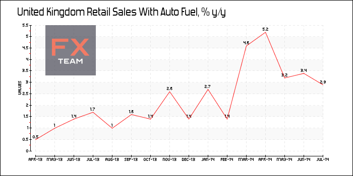 В годовом выражении розничные продажи в Великобритании повысились на 2,6% в июле по сравнению с ростом на 3,4% в июне.
