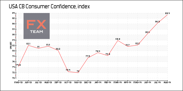 По данным Conference Board, индекс доверия потребителей возрос до отметки 92,4 в отчетном периоде по сравнению с 90,3 в июле. Отметим, что рост индекс продолжается уже четвертый месяц подряд.