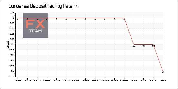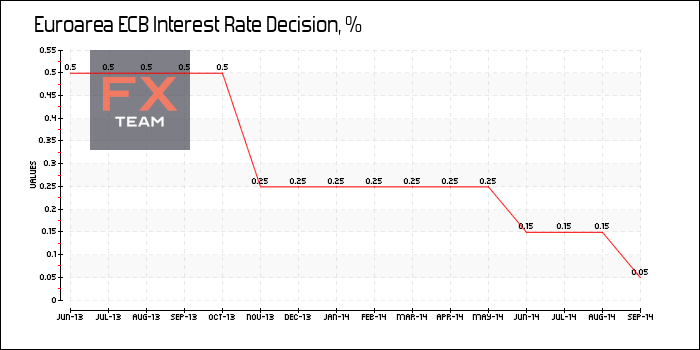На заседании по кредитно-денежной политике, состоявшемся 4 сентября 2014 г., Совет управляющих Европейского центрального банка принял решение о снижении основной процентной ставки по операциям рефинансирования с 0,15% до 0,05%. Депозитная ставка была снижена с -0,10% до -0,20%, ставка по кредитам ЕЦБ – с 0,40% до 0,30%. Решение было неожиданным для большинства участников рынка.