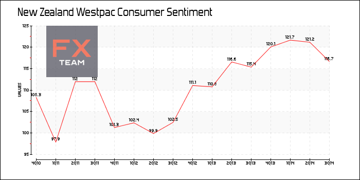 Индекс экономической уверенности от Westpac снизился до отметки 116,7 в третьем квартале по сравнению с 121,2 в предыдущем квартале.