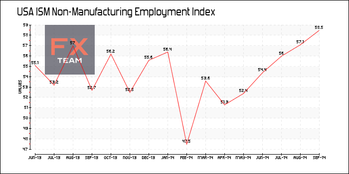 Как сообщает ISM, индекс активности в непроизводственном секторе экономики США упал до отметки 58,6 в сентябре по сравнению с 59,6 в августе.