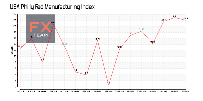 Производственный индекс ФРС Филадельфии упал до отметки 20,7 в октябре по сравнению с 22,5 в прошлом месяце. Тем не менее, значение индекса выше нуля свидетельствует о росте активности в секторе. Отметим также, что всего три месяца назад индекс достиг рекордного уровня за последние три года.