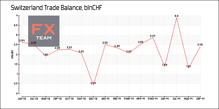 Торговый профцит вырос до 2.45 млрд. швейцарских франков в сентябре с 1.3 млрд. в августе. Ожидаемый уровень был на отметке 2.49 млрд.