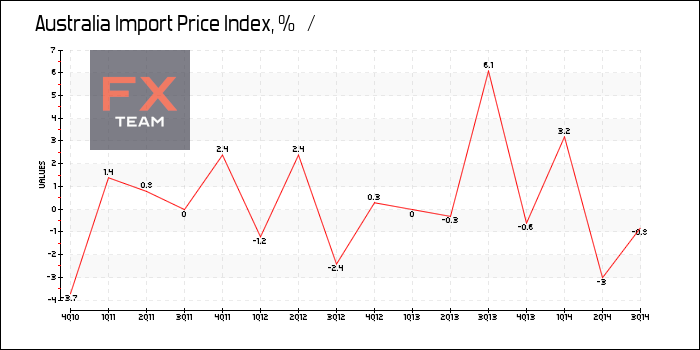 Цены импорта снизились на 0.8% в квартальном исчислении, вопреки прогнозам роста на 0.2%. В предыдущие три месяца показатель снизился на 0.3%.