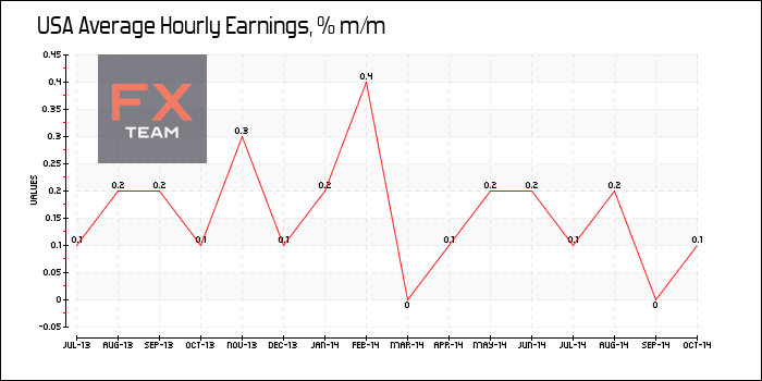 Индекс средней почасовой оплаты труда увеличился на 0,1% за октябрь в месячном исчислении при прогнозе роста на 0,2%. В сентябре показатель не изменялся.