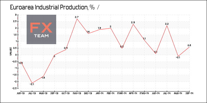 В Евросоюзе из 28 стран, промышленное производство выросло на 0.6% в годовом исчислении в сентябре, отскочив с 0.2% снижения в предыдущем месяце (показатель был пересмотрен в сторону роста с первоначально отмеченного падения в 0.8%).