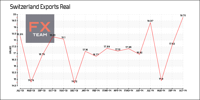 Объем экспорта увеличился на 4,7% до рекордной отметки 19,76 млрд. франков в октябре. В то же время, объем импорта повысился на 2,7% в октябре после снижения на 6,2% в сентябре.