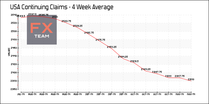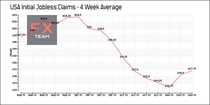 4-недельная средняя первичных обращений за пособием по безработице составила 287 500, увеличившись на 1750 по сравнению с уровнем 285 750 на предыдущей неделе.