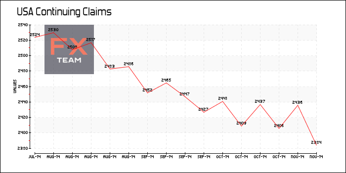 Число повторных заявок на получение пособия по безработице снизилось за неделю к 8 ноября с 2 403 000 до 2 330 000. Это самый низкий уровень показателя с декабря 2000 года.