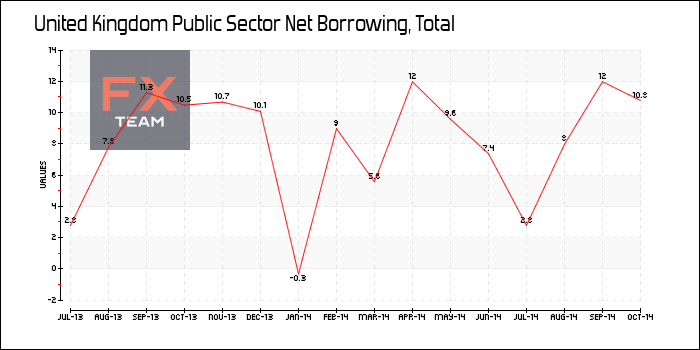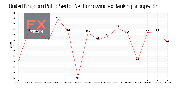Чистый объем заемных средств государственного сектора в Великобритани без учета финансовых интервенций сократился в годовом выражении на 2,4% до GBP7,7 млрд. в октябре по сравнению с GBP7,9 в аналогичном периоде прошлого года.