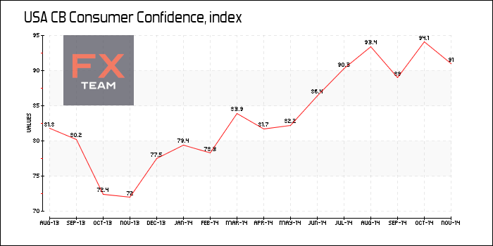 Индекс доверия потребителей упал до отметки 88,7 в ноябре по сравнению с 94,5 в октябре.