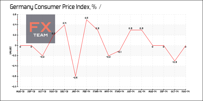 В месячном выражении потребительские цены в Германии остались на прежнем уровне в ноябре после падения на 0,3% в предыдущем месяце.