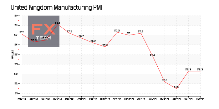 Производственный PMI вырос до 53.5 в ноябре с 53.3 в октябре, который был пересмотрен с 53.2. PMI выше отметки 50 говорит о росте сектора. Британская обрабатывающая промышленность растет уже двадцать первый месяц подряд.