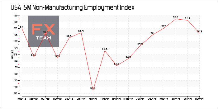 Индекс новых заказов в непроизводственном секторе возрос до 61,4 в ноябре по сравнению с 59,1 в октябре. В то же время, индекс занятости упал до 56,7 в ноябре по сравнению с 59,6 в предыдущем месяце.