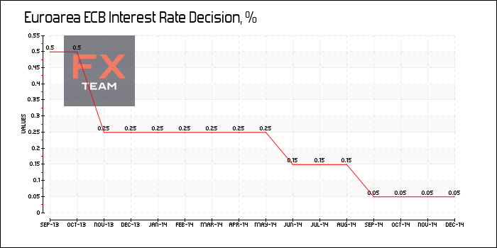 На заседании по кредитно-денежной политике, состоявшемся 4 декабря 2014 г., Совет управляющих ЕЦБ принял решение о сохранении основной процентной ставки по операциям рефинансирования, депозитной ставки и ставки по кредитам на уровне 0,05%, -0,20% и 0,30%, соответственно. Решение было ожидаемым для большинства участников рынка.