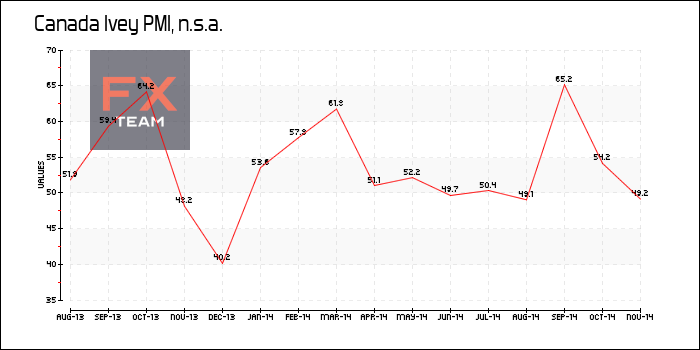 Индекс PMI от Ivey (IveyPurchasingManagersIndex) c поправкой на сезонность составил 56,9 пункта в ноябре 2014 г. по сравнению с 51,2 пункта в предыдущем месяце. Показатель превысил прогнозируемый уровень 52,7 пункта.