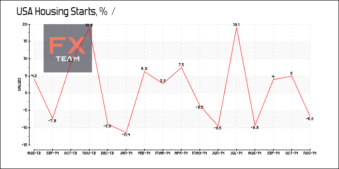 По данным Министерства торговли США, число закладок фундаментов новых домов в США упало на 1,6% до 1,028 млн. в ноябре.