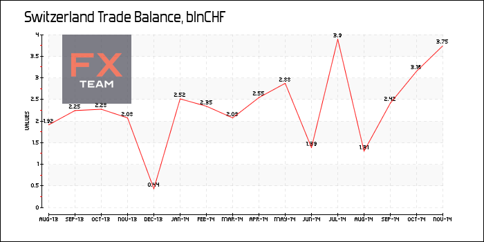 Торговый профицит вырос до 3.87 млрд. швейцарских франков в ноябре с 3.22 млрд. в предыдущие месяцы. Экономисты прогнозировали, что профицит составит 2.92 млрд.