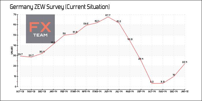 Оценка текущей ситуации в Германии также улучшилась в январе. Индекс вырос до отметки 22,4 пункта по сравнению с 10 пунктами в декабре 2014 г. Ожидалось повышение до 13 пунктов.