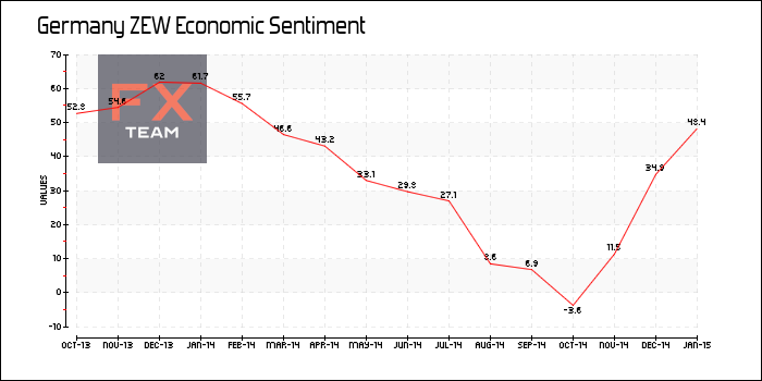 По данным института ZEW, индекс настроений в деловой среде Германии составил 48,4 пункта за январь 2015 г. по сравнению с 34,9 пункта месяцем ранее, превысив прогнозируемый уровень 40,1. Показатель растет третий месяц подряд и достиг максимального значения с февраля 2014 г.