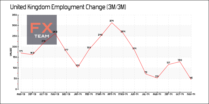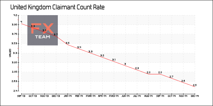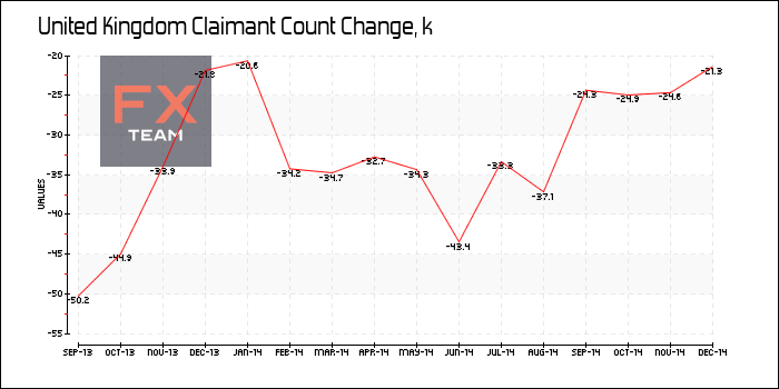 По данным Национального статистического управления, число заявлений на получение пособия по безработице (Claimant count) в Великобритании уменьшилось на 29 700 за декабрь 2014 г. Экономисты прогнозировали сокращение показателя на 24 200 после снижения на 29 600 месяцем ранее.