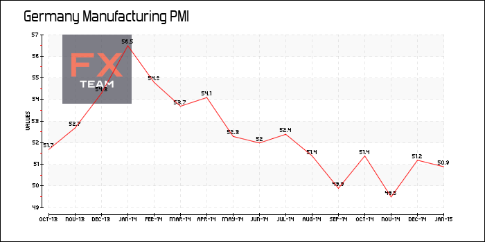 По предварительным данным, индекс деловой активности в производственном секторе (Manufacturing PMI) Германии составил 51,0 пункта за январь 2015 г. по сравнению с 51,2 пункта в предыдущем месяце, сообщает MarkitEconomics. Ожидался рост показателя к уровню 51,8 пункта.