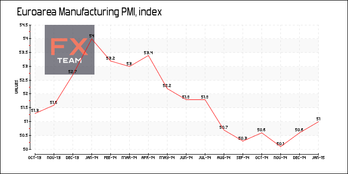 По предварительным данным MarkitEconomics, индекс деловой активности в производственном секторе (Manufacturing PMI) еврозоны составил 51,0 пункта за январь 2015 г. по сравнению с 50,6 пункта в декабре. Значение показателя соответствует ожиданиям экономистов.