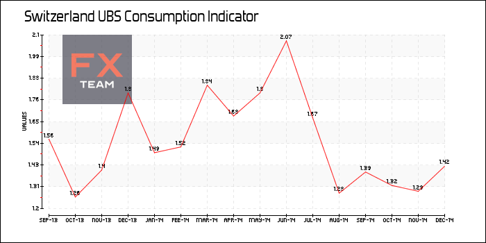 Индикатор потребительской активности в Швейцарии от UBS составил 1,42 пункта за декабрь 2014 г. по сравнению с 1,29 пункта в предыдущем месяце.