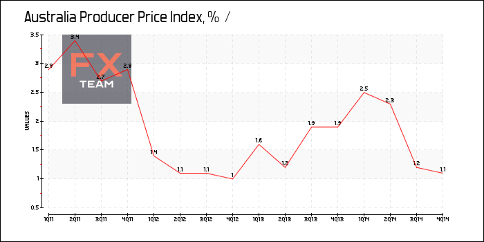 В годовом выражении рост цен производителей в Австралии также замедлилися до 1,1% в четвертом квартале по сравнению с 1,2% в третьем квартале.